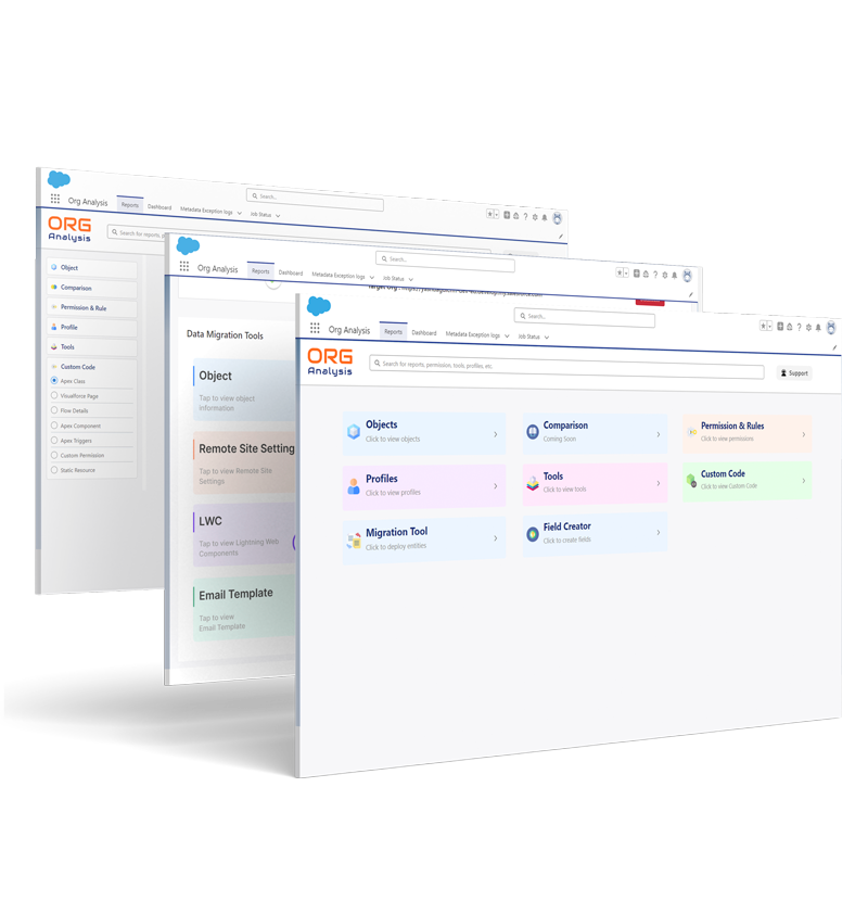 Developed on Salesforce AppExchange, Org Analysis is a free tool that streamlines all the data management tasks within your Salesforce Org. It offers comprehensive insights into an Organization’s Salesforce Org by offering In-depth analysis by providing downloadable Excel files.